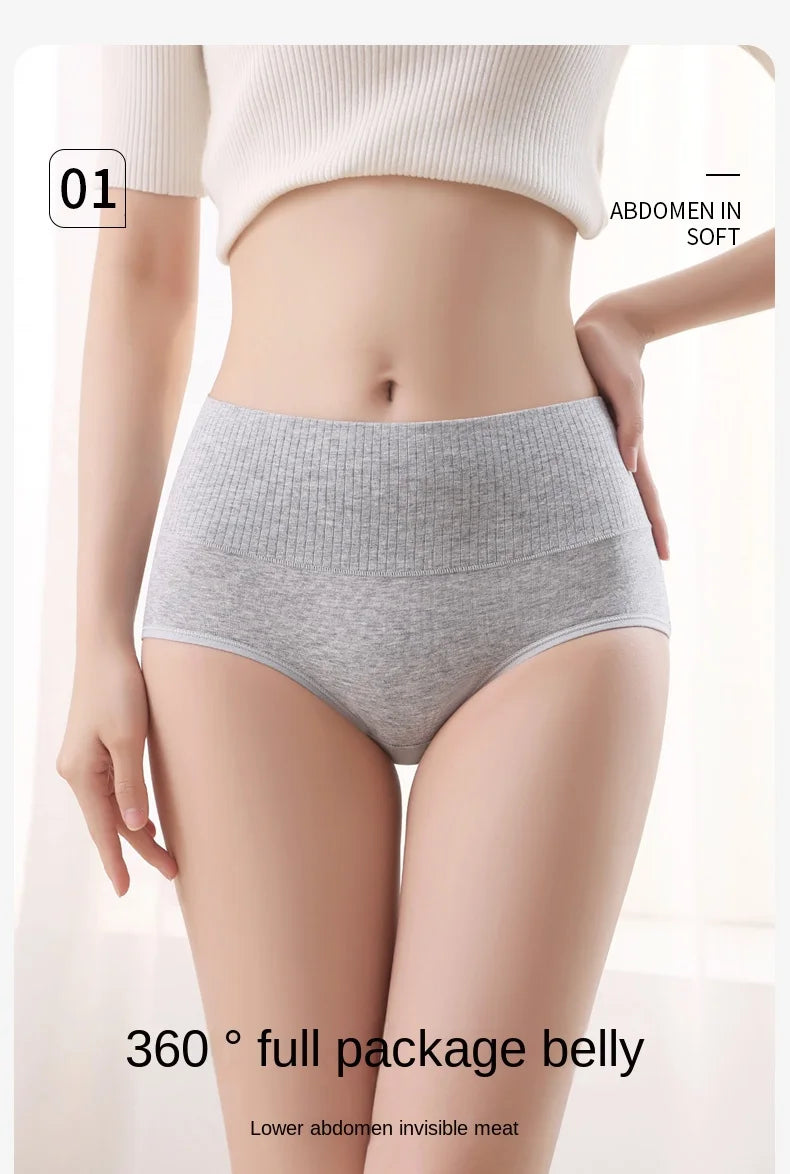 Cotton Women's Panties Elastic Soft Large Size XXL Solid color Ladies Underwear Breathable Sexy High Waist Tummy control Briefs