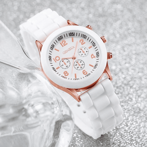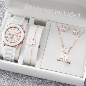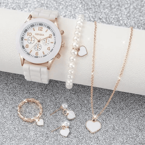 Elegant 6 Piece Women's White Silicone Watch and Jewelry Set